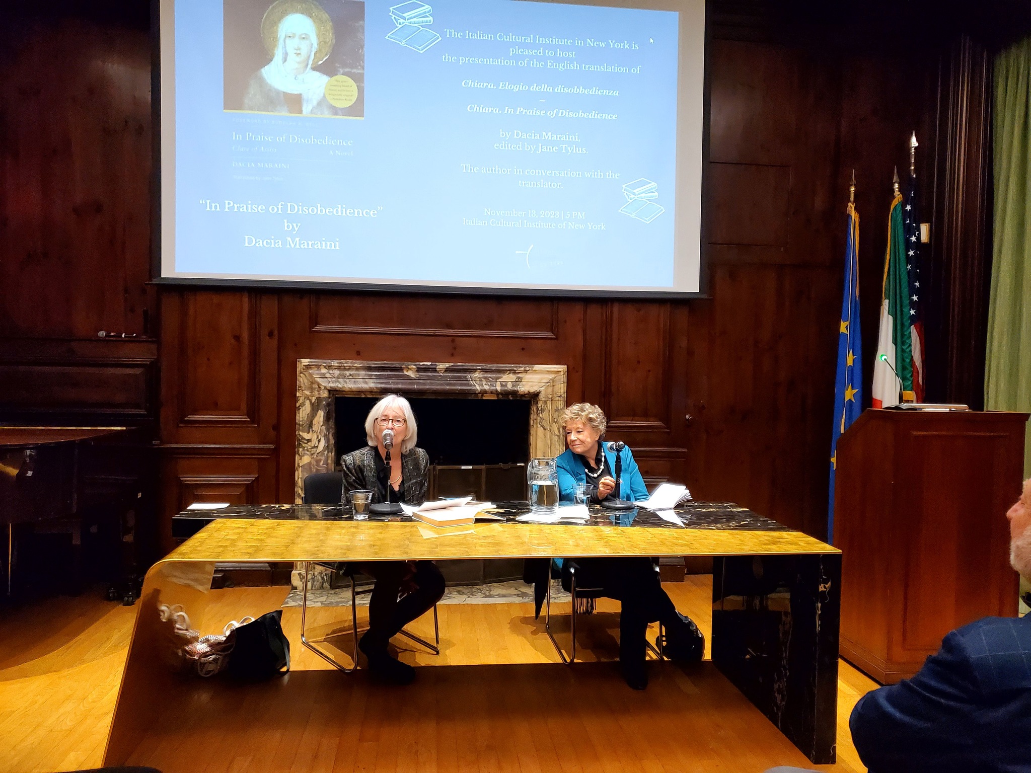 Dacia Maraini ha scelto il giorno del suo 87esimo compleanno per presentare, presso l’Istituto italiano di cultura di New York, il libro “Chiara. Elogio della disobbedienza” (2022, Rutgers University Press) nella traduzione di Jane Tylus.