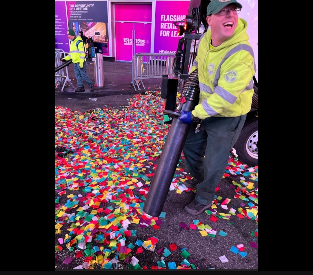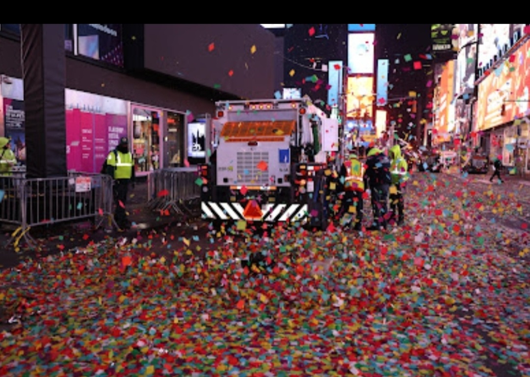 I festeggiamenti a Times Square per salutare il nuovo anno hanno lasciato in piazza oltre centomila libbre di coriandoli! Cosi’, i dipendenti del Dipartimento di Igiene di Ny si sono rimboccati le maniche al fine di pulire tutto e subito.