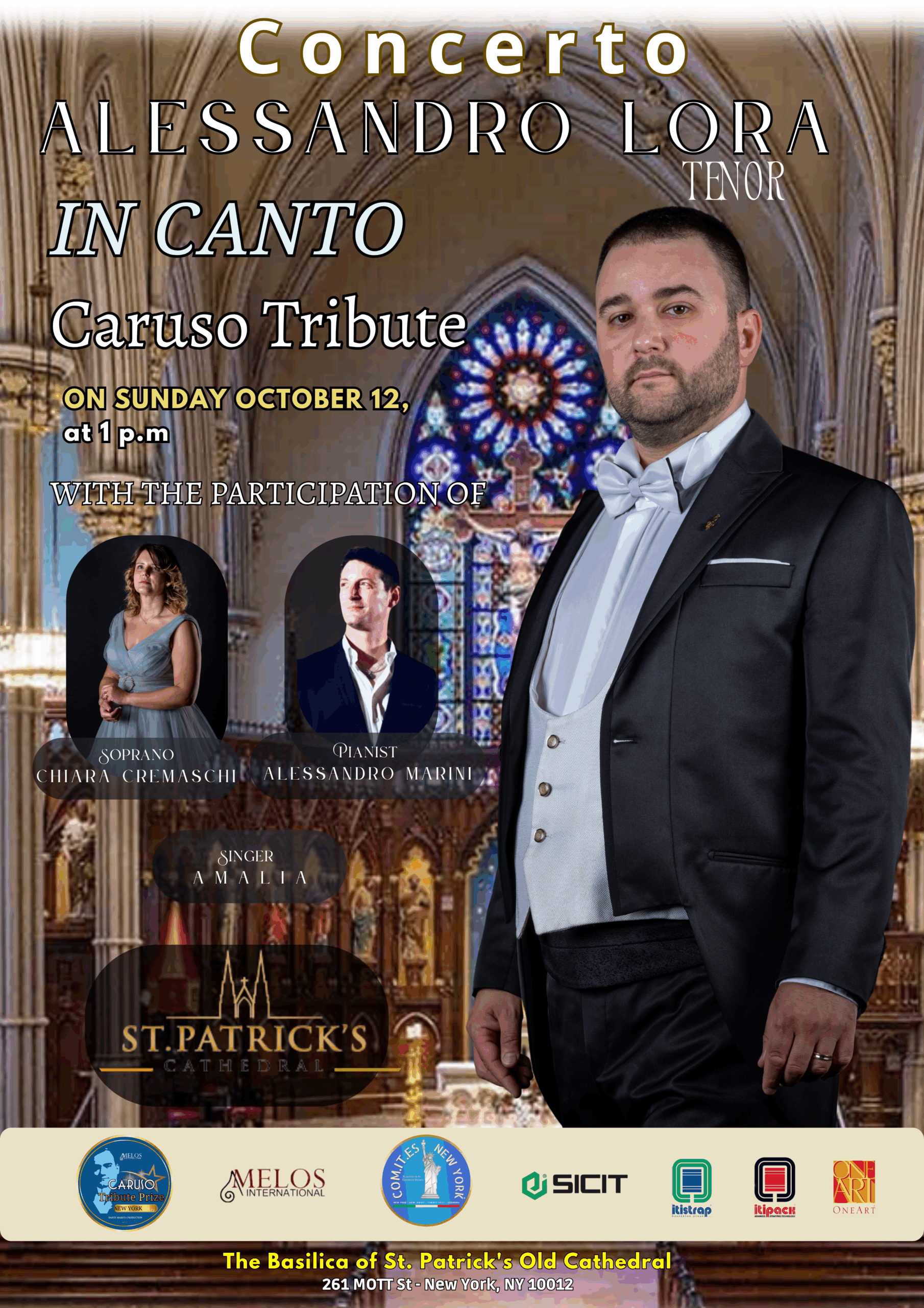 Il 12 ottobre alle ore 13:00, infatti, si esibirà nella prestigiosa Basilica di San Patrick Old Cathedral, cuore storico e spirituale della città, accanto al soprano Laura Cremaschi, al pianista Alessandro Marini e alla cantante spagnola Amalia con la sua AVE MARIA PER LA PACE. Alla serata, dedicata al grande repertorio del bel canto italiano, parteciperanno autorità ecclesiastiche e civili, oltre a numerosi ospiti del mondo culturale e vip americani.